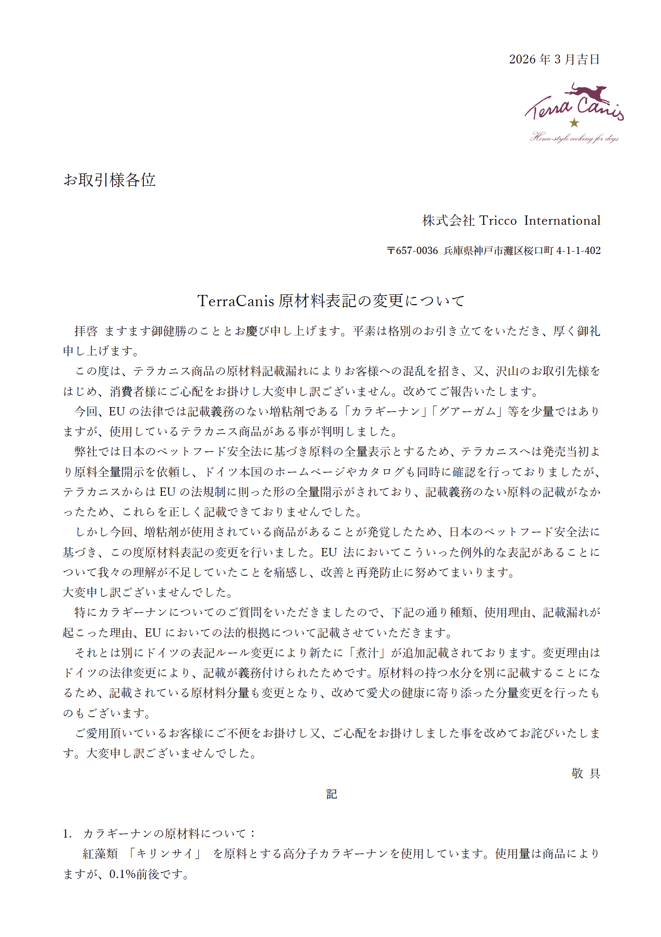いつもテラカニスをご愛顧頂きありがとうございます。